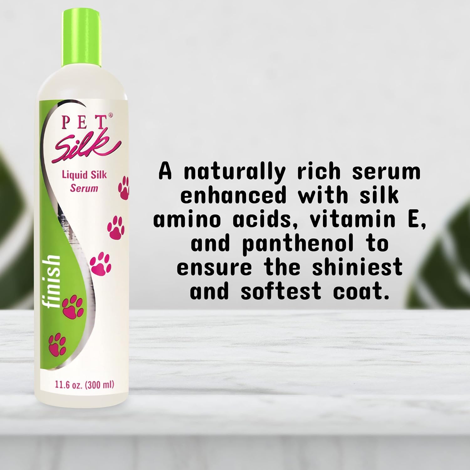 PET SILK Liquid Silk Serum, Leave-in Finishing Spray Conditioner & Detangler, Inused with Silk, Vitmain E & Panthenol Designed for a Shiny, Healthy & Moisturized Skin & Coat (11.6oz)