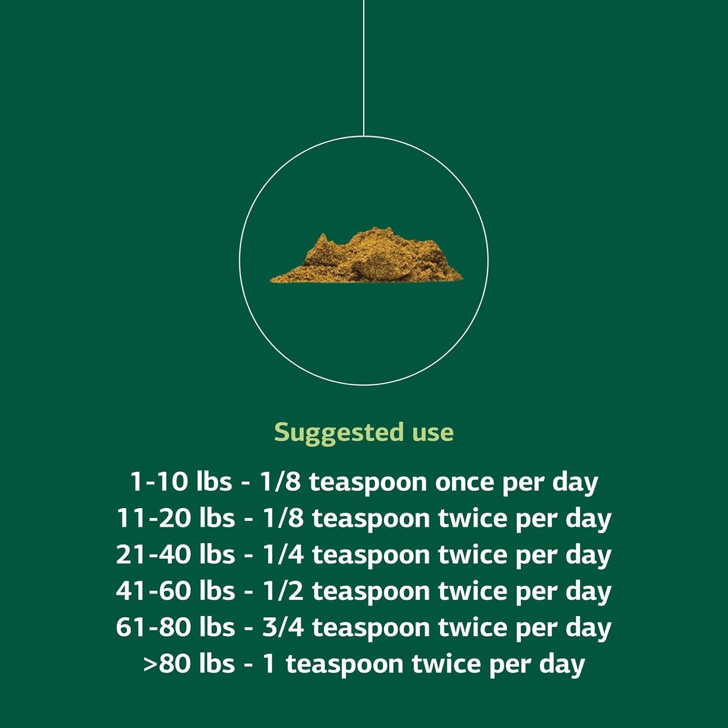 - Supplement Measurement & Dosing: Includes a 1/8 teaspoon scoop for small bottles and a 1/2 teaspoon scoop for large bottles for an accurate dosage based on your dog's weight