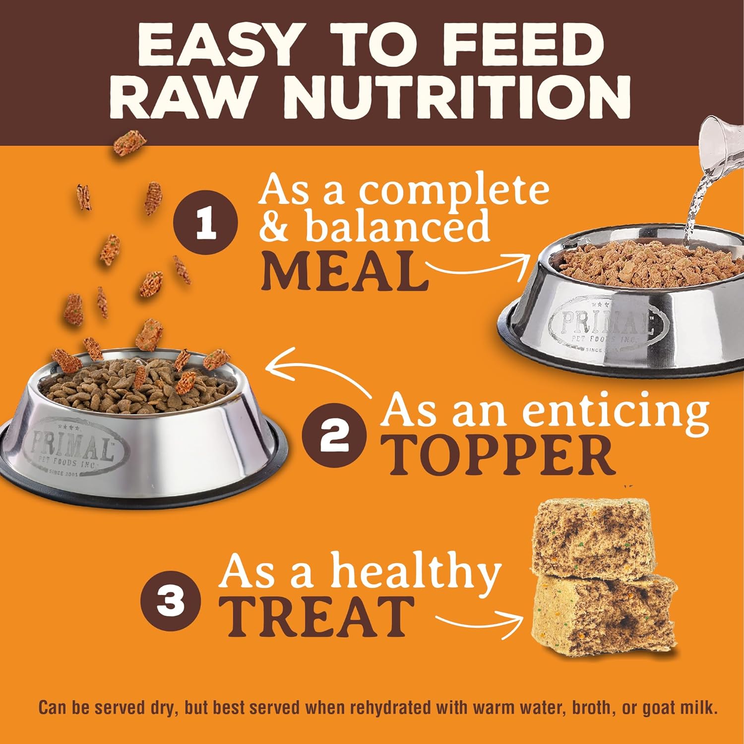 - Serve as a complete & balanced meal, a freeze dried dog food topper or treat. Adding Primal Pet Food just a few times a week will help you start to see the results raw food for dogs can provide