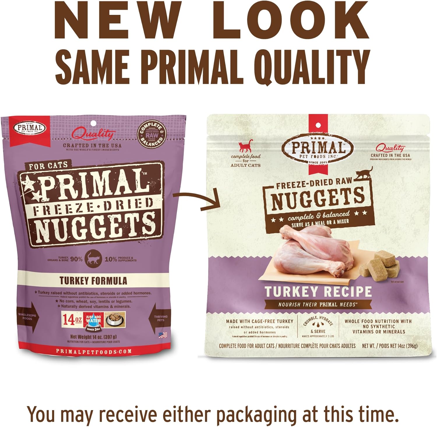 Primal Freeze Dried Raw Cat Food Nuggets Turkey, Complete & Balanced Meal or Topper, Premium, Healthy, Grain Free, High Protein Raw Cat Food with Probiotics (14 oz)