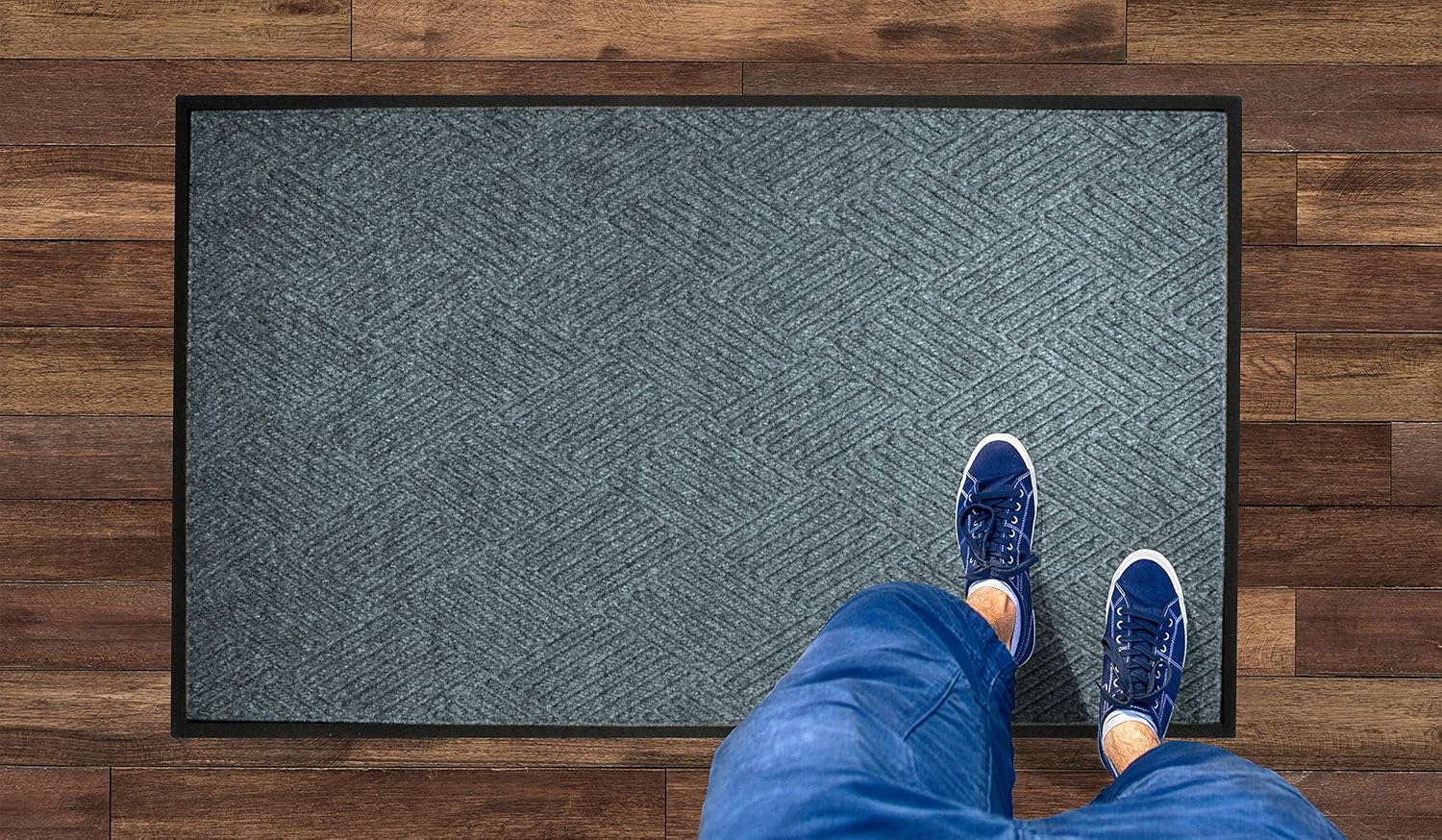M+A Matting WaterHog Diamond | Commercial-Grade Entrance Mat with Rubber Border – Indoor/Outdoor, Quick Drying, Stain Resistant Door Mat (Bluestone, 3' x 5')