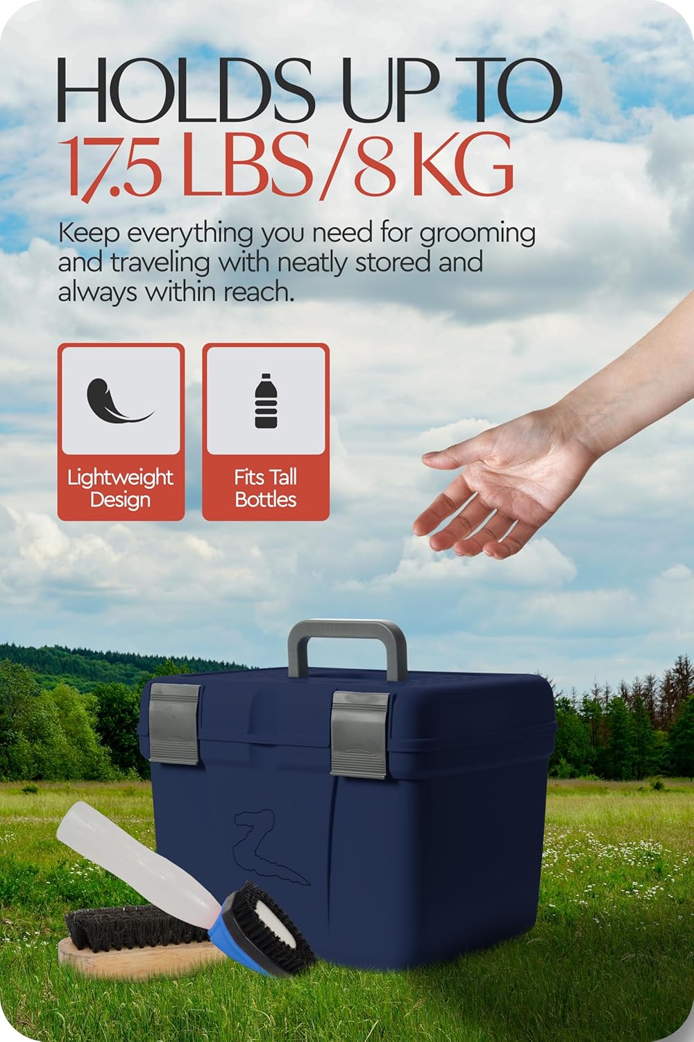 - ✅ More Than Just a Grooming Box: This grooming tote box doubles as a step for when you need one. Thanks to a non-slip surface on the lid you can safely use the box as a step to help groom your horse.
