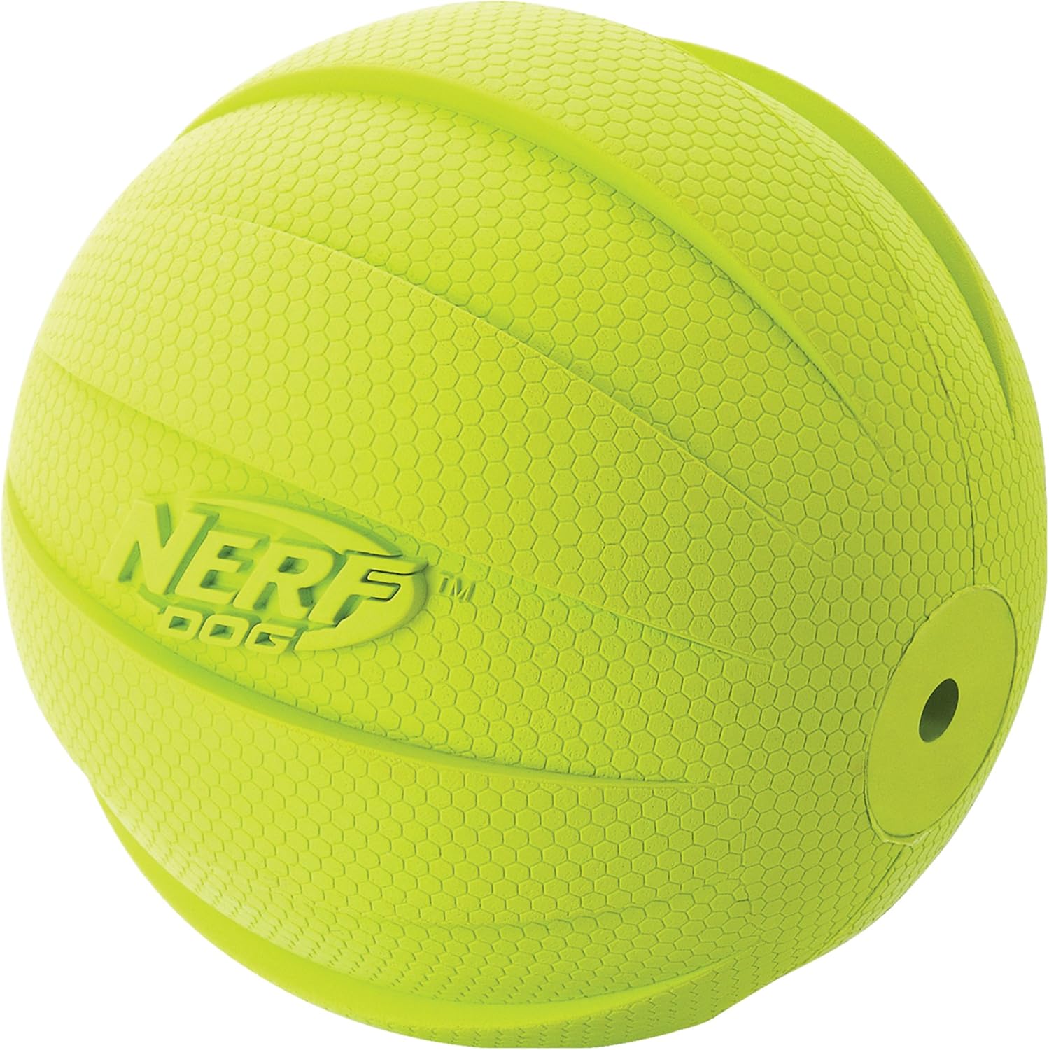 Nerf Dog Rubber Ball Dog Toy with Squeaker, Lightweight, Durable and Water Resistant, 4 Inch Diameter for Medium/Large Breeds, Single Unit, Green