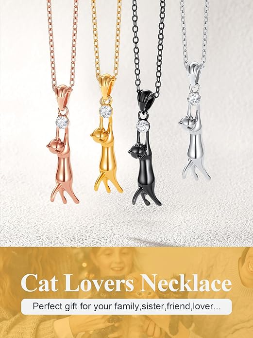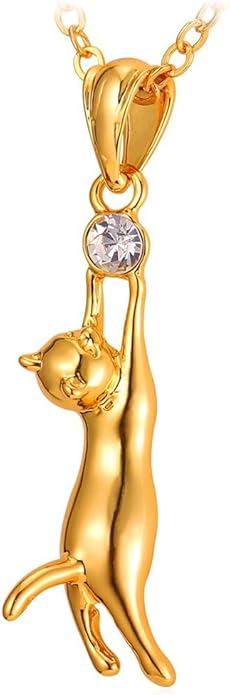 U7 Cat Pendant Necklace for Women Stainless Steel Cute Kitty Cat Jewelry Gift