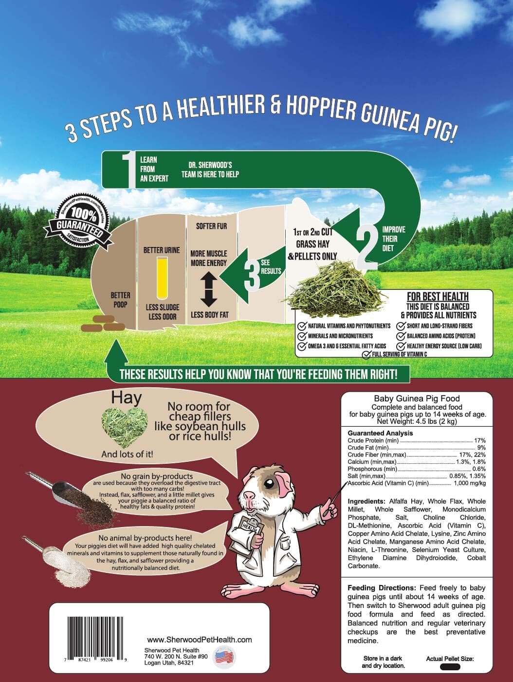 - All-natural ingredients: Contains no artificial binders, fillers, or additives, providing a clean, wholesome diet for your young guinea pig's development.