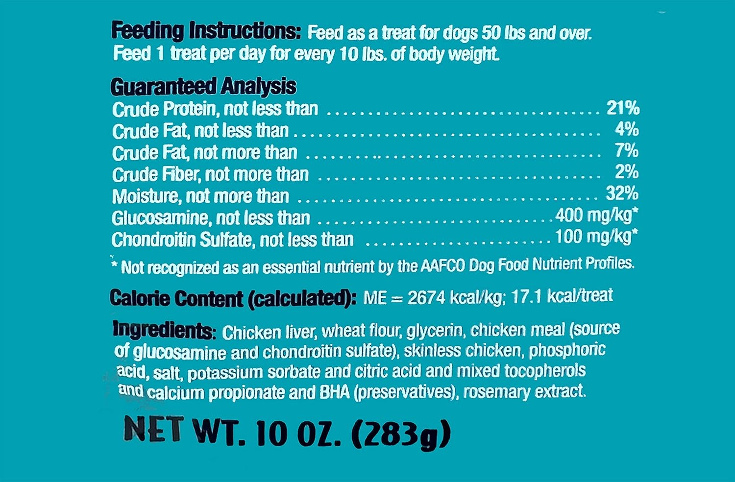 - Lean Treats for Large Breed Dogs contain glucosamine and chondroitin sulfate for supplemental purposes - not for therapeutic intentions
