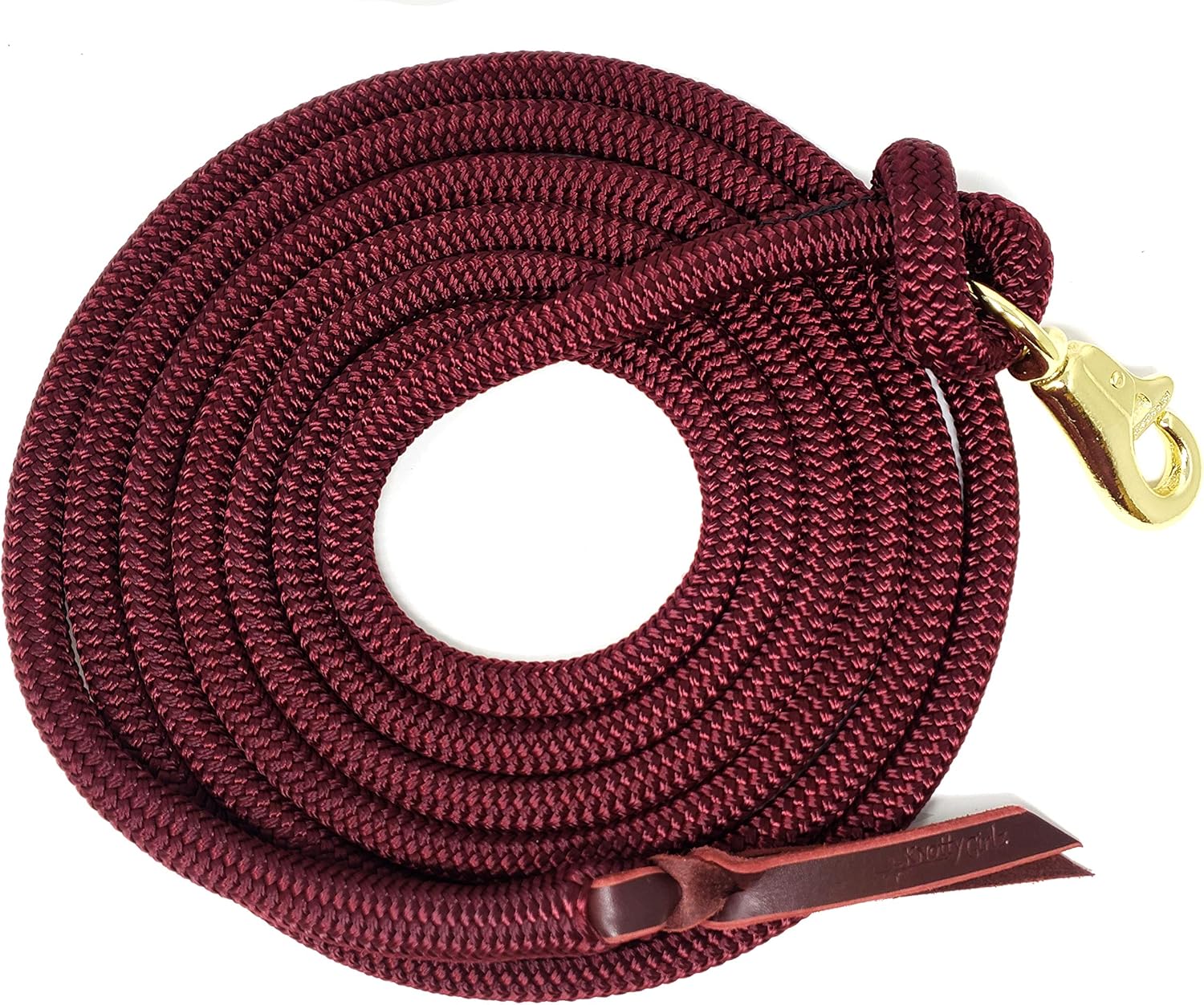 Double Braid Lead Rope with Eye Splice Loop, 12-14FT Lengths (Burgundy, 14 ft.)