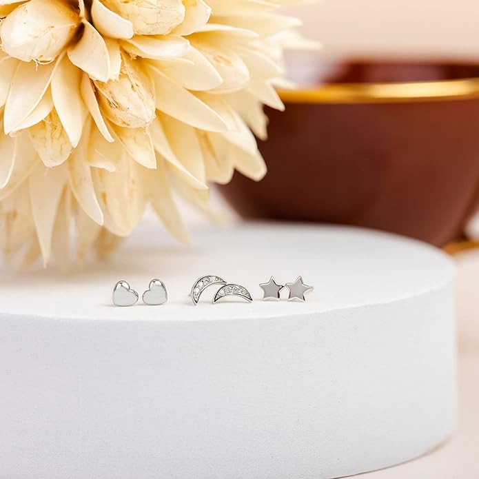 PAVOI 14K Gold Plated Sterling Silver Bar, Dot, Heart, Triangle, Star, Cat | Dainty Earrings for Women