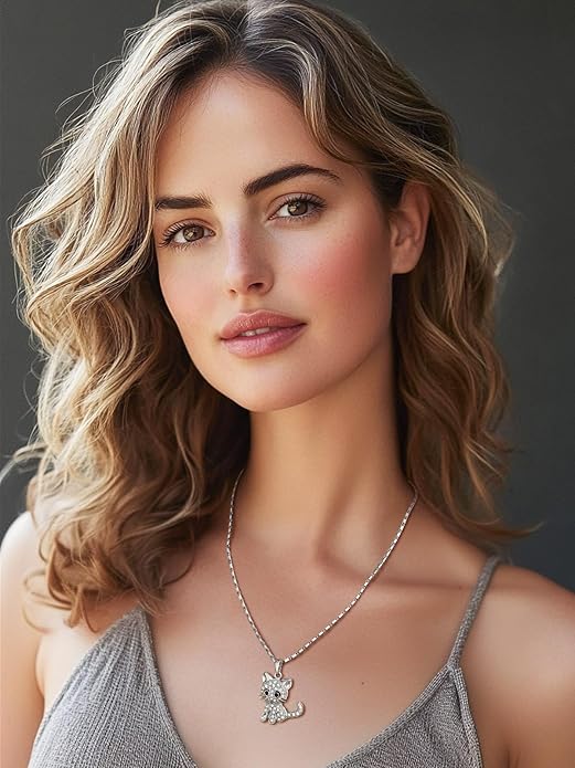 - Austrian rhinestone crystal shiny cat necklace for cat lovers.