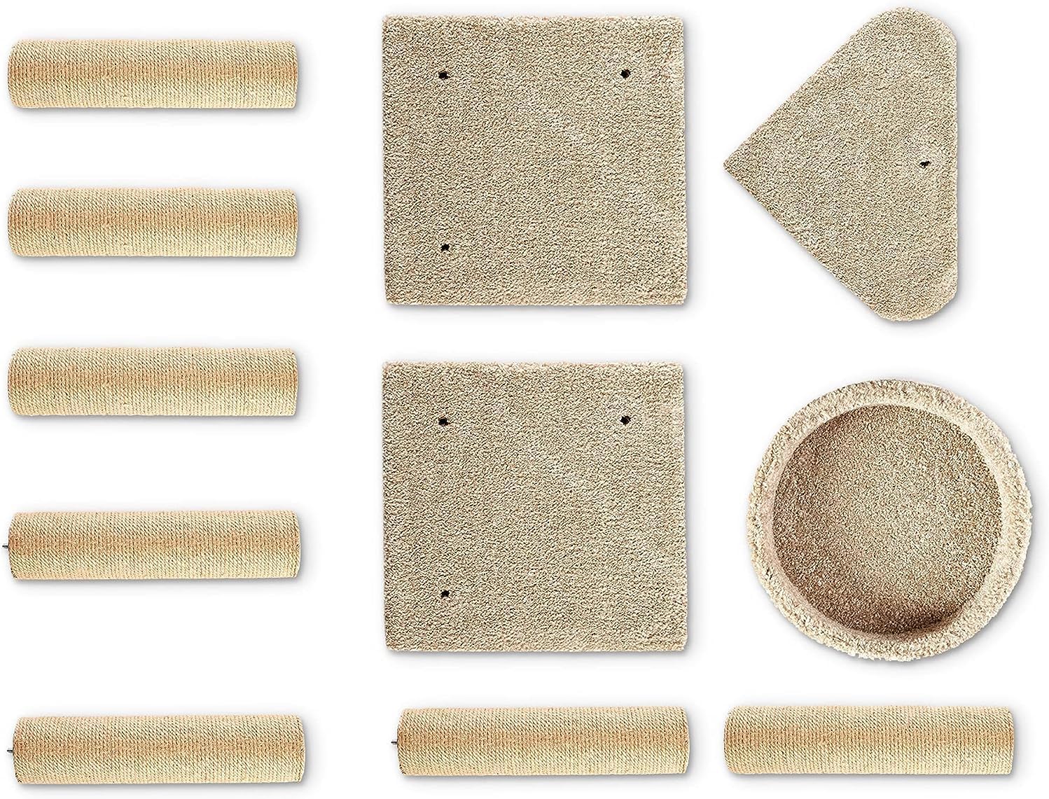 - 7 scratching posts wrapped in jute rope create enticing scratching surfaces