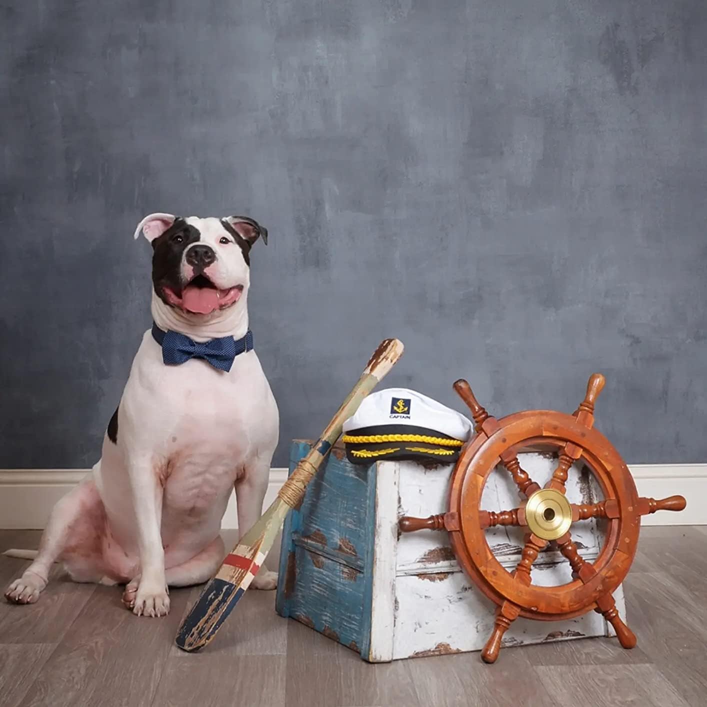 Lionet Paws Boy Dog Collar with Bowtie, Comfortable Adjustable Cute Navy Blue Bow Tie Collar for Male Dogs Gift, Large, Neck 16-24 inches