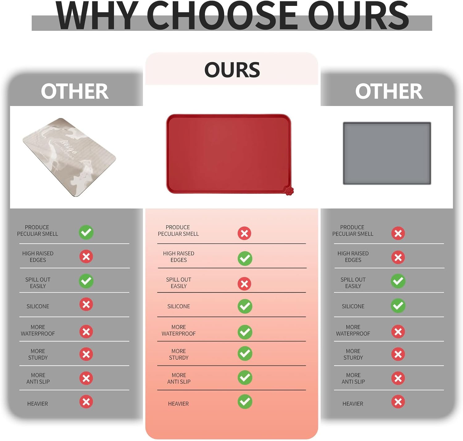 - High-raised edges: say goodbye to messy floors with our mats' high-raised edges that protect your floors from spills and splashes. Keep food and water contained and your floors mess-free