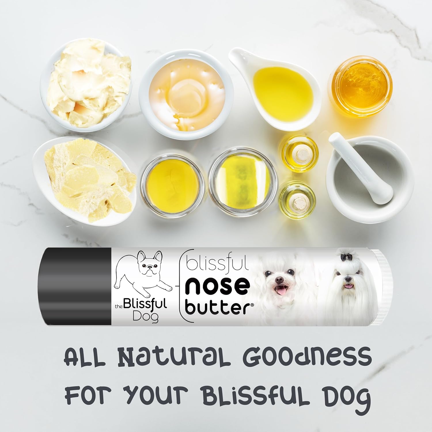 The Blissful Dog Maltese Nose Butter for Dry, Cracked Skin, Lick-Safe Dog Nose Balm with Moisturizing Shea Butter, Almond, Olive, and Essential Oils, Pet Supplies, Uncented, 0.15 oz.