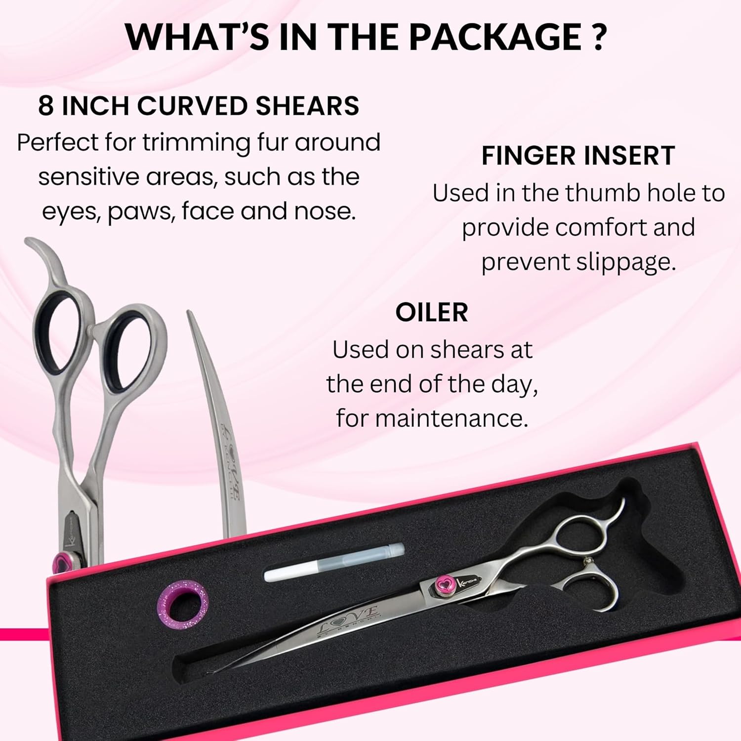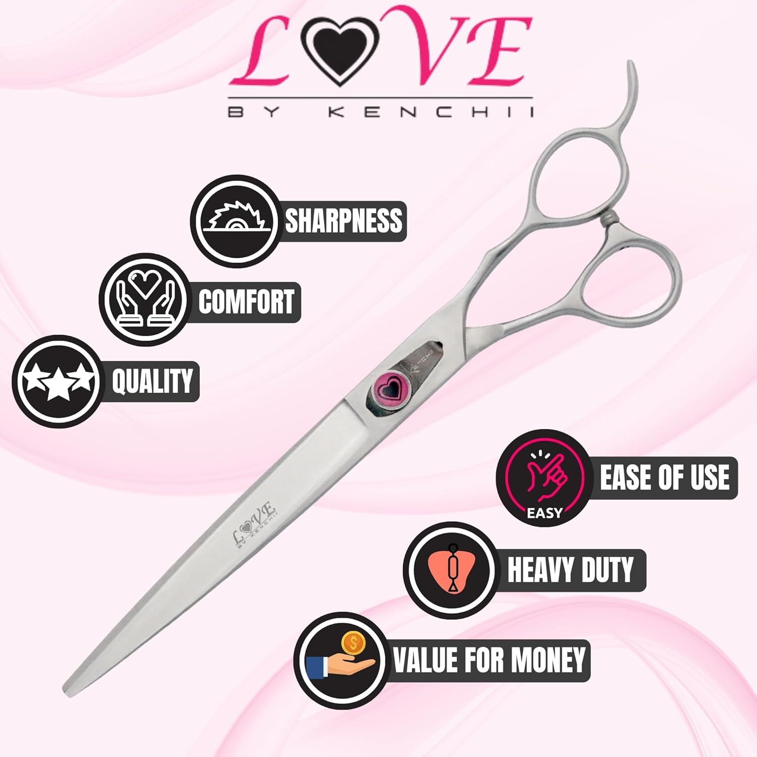 Kenchii Love Left Handed Dog Grooming Scissors, 8 Inch Curved Shears, Dog Scissors for Grooming, Professional Pet Grooming Scissors, Ergonomic & Comfortable