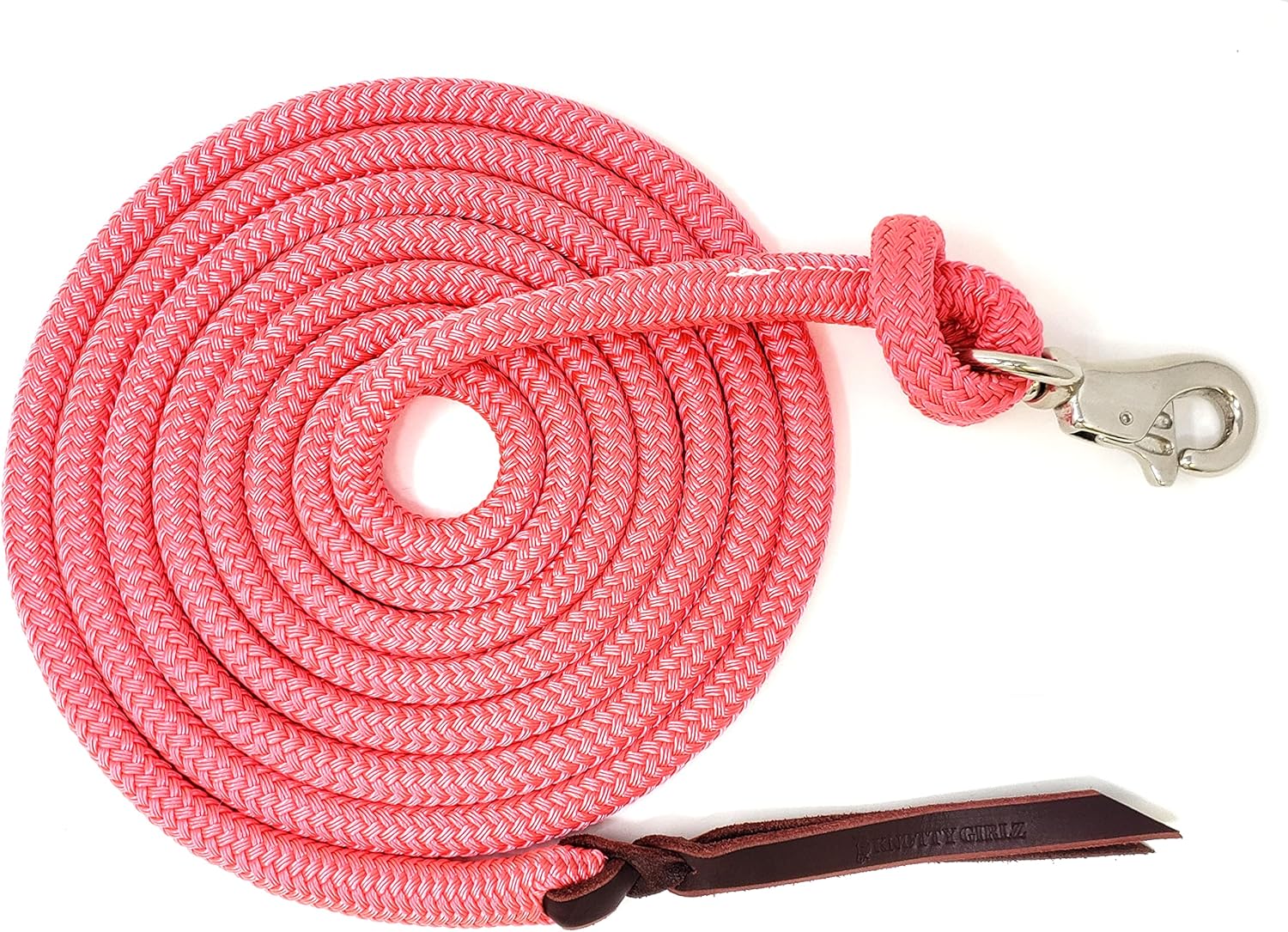 Premium 1/2" Samson EQ Yacht Braid Lead Rope with Nickel Trigger Bull Snap. Option for 12ft, 14ft and 16ft Lengths (Pink, 14 FT)