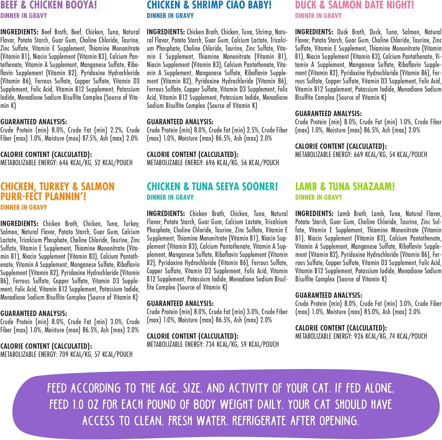 Weruva B.F.F. OMG - Best Feline Friend Oh My Gravy!, Variety Pack, Potluck O' Pouches, Wet Cat Food, 2.8Oz Pouches (Pack of 12)