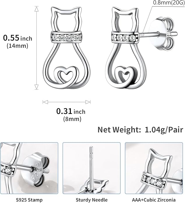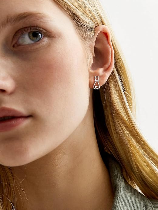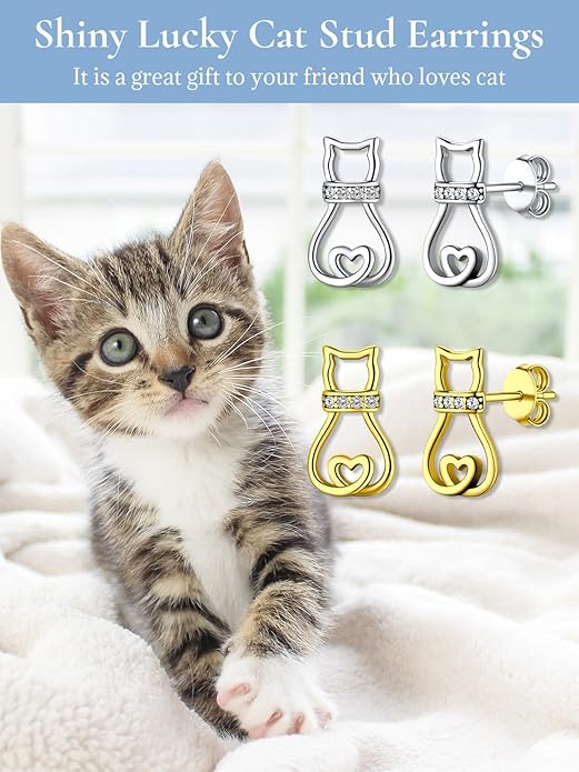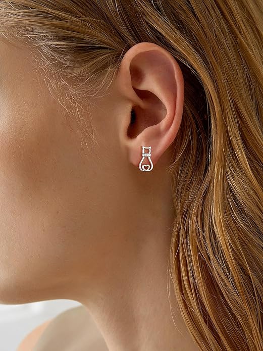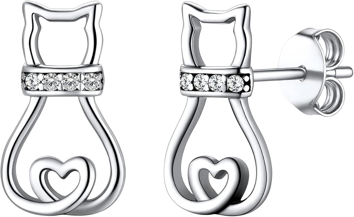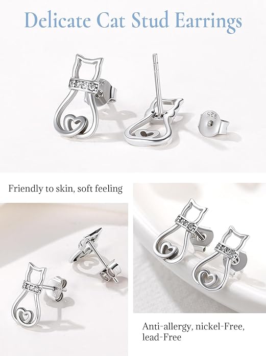 SILVERCUTE Cat Earrings for Women Girls 925 Sterling Silver Hypoallergenic Lovely Animal Stud Earrings Cat Lovers Gift
