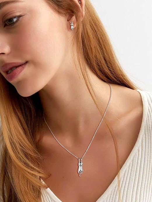 SILVERCUTE Cat Necklaces for Cat Lovers Sterling Silver Womens Jewelry S925 Kitten Pendant Cat Collarbone Necklace
