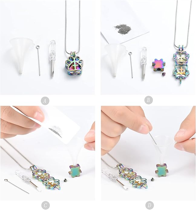 - 💕 Urn jewelry design💕 :The paw print urn pendant memorial ash keepsake cremation jewelry is hollow and can be open a small space to hold a small amount of a lock of pet’t fur, a loved one or pet’s ashes, soil, special messages, perfume, etc.