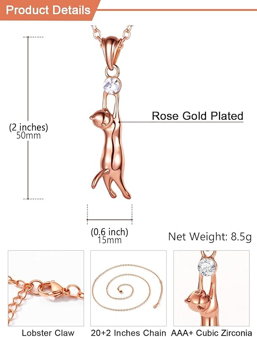 - Material: environmental friendly copper based, rose gold plated, personalized colored, rhinestone inlaid on cat.