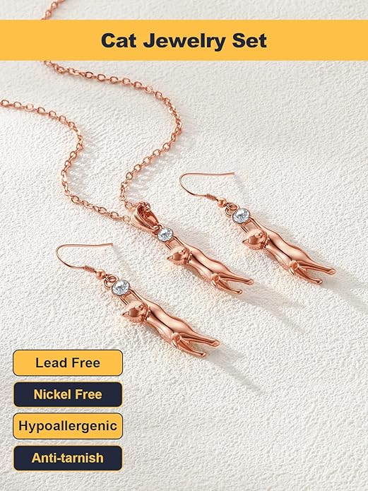 - Cat Design Jewelry Set : pendant necklace with drop earrings.