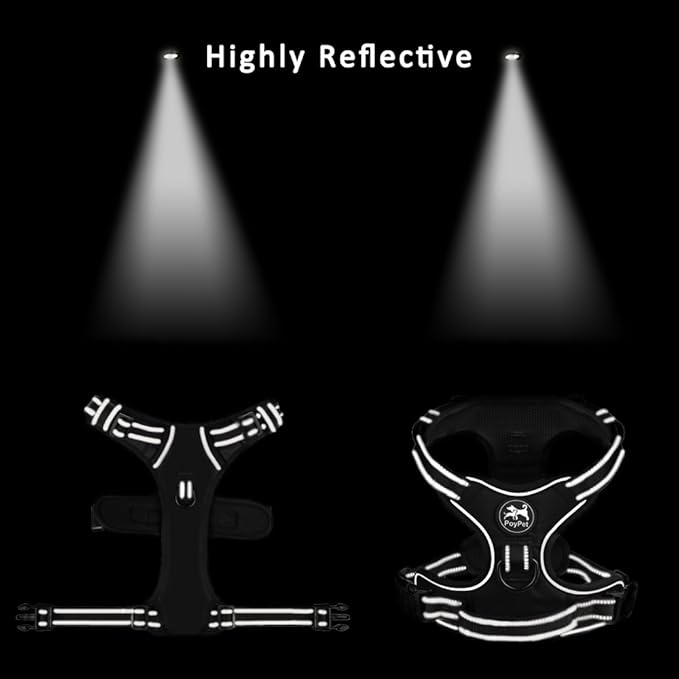 PoyPet No Pull Dog Harness, Reflective Comfortable Vest Harness with Front & Back 2 Leash Attachments and Easy Control Handle Adjustable Soft Padded Pet Vest for Small to Large Dogs (Pink,S)