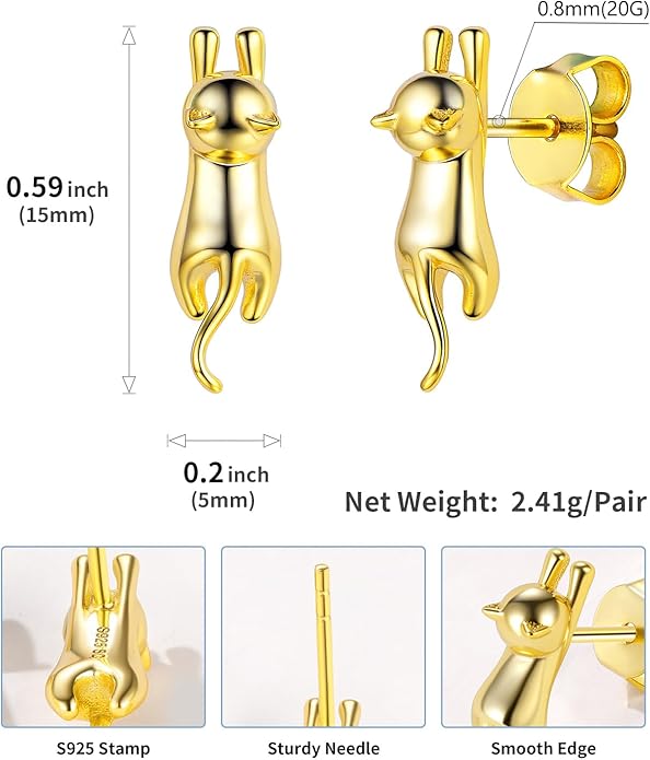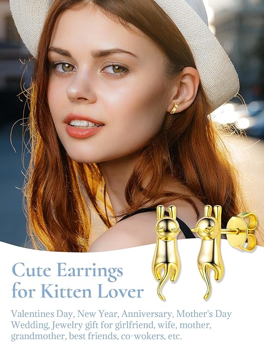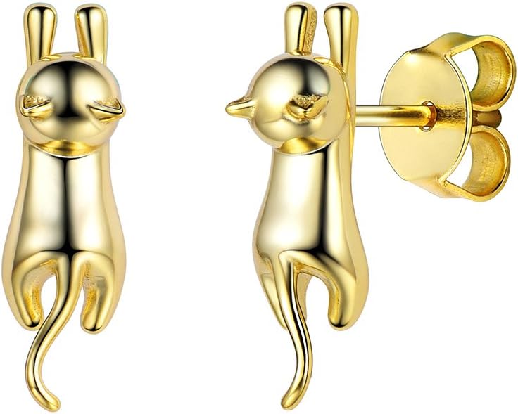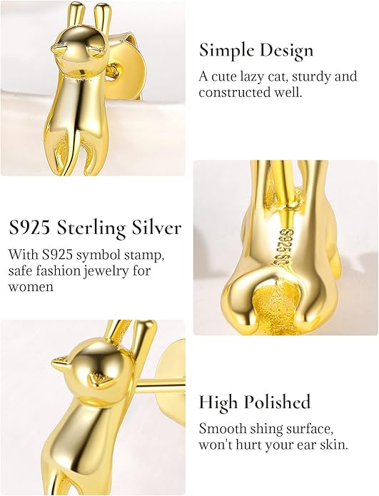 SILVERCUTE Cat Earrings for Women Girls 925 Sterling Silver Hypoallergenic Lovely Animal Stud Earrings Cat Lovers Gift