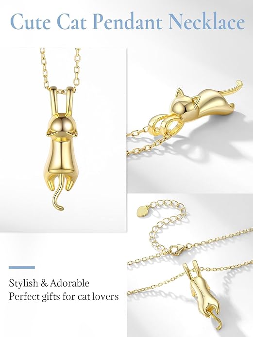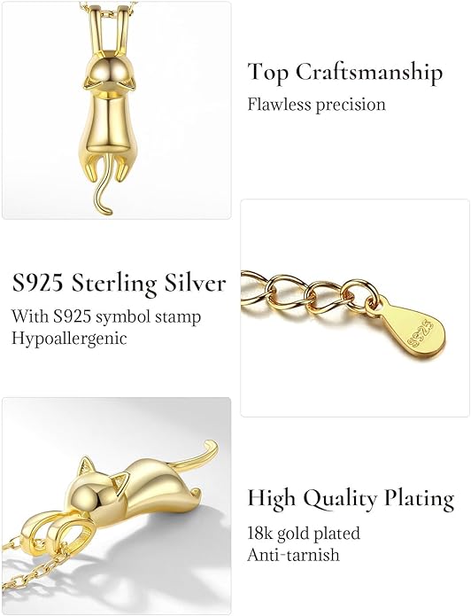 - S925 Sterling Silver Material: The whole cat necklace is made of 925 sterling silver based 14K real gold plated, which is hypoallergenic and nickel free.