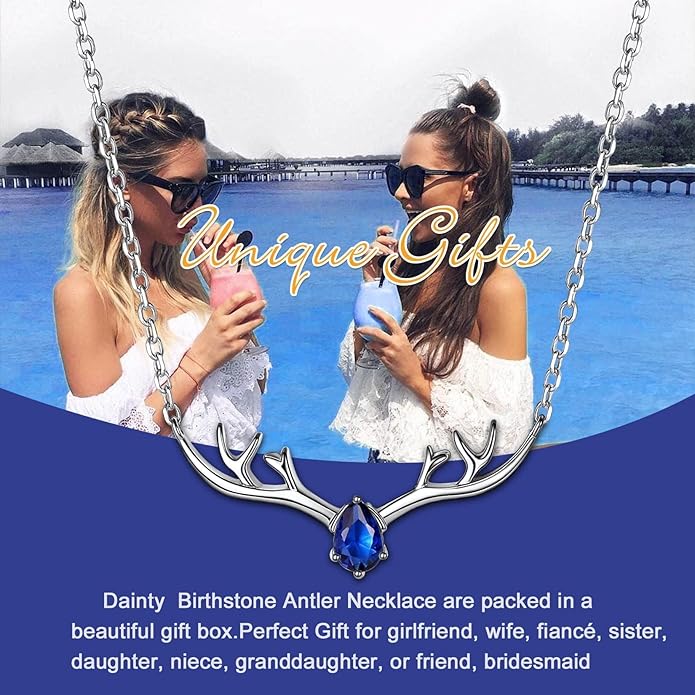 SILVERCUTE Sterling Silver Birthstone Necklaces for Women, Xmas Antler Deer Pendant Necklace with Colorful Cubic Zirconia,16-18 inches