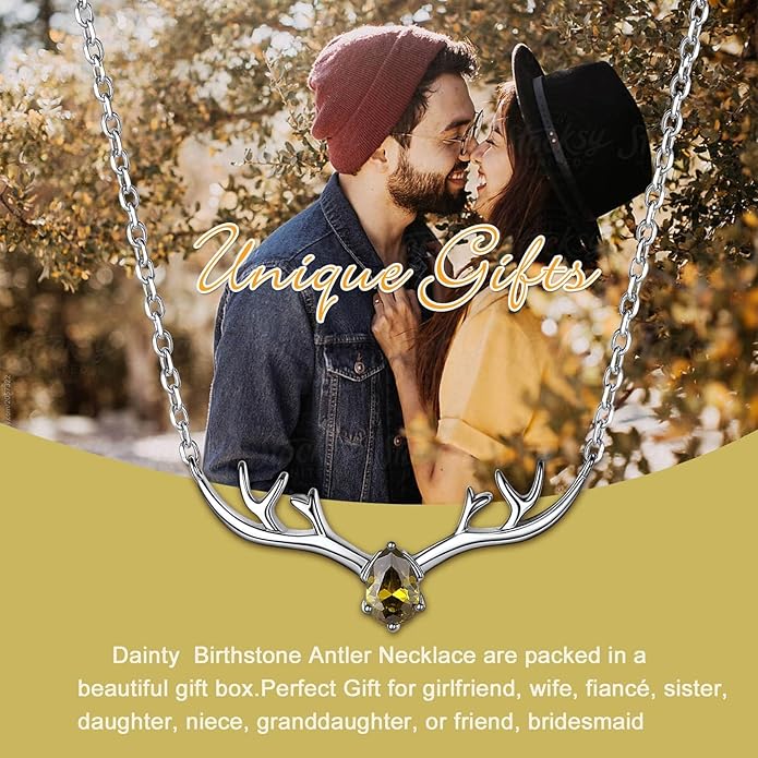 SILVERCUTE Sterling Silver Birthstone Necklaces for Women, Xmas Antler Deer Pendant Necklace with Colorful Cubic Zirconia,16-18 inches
