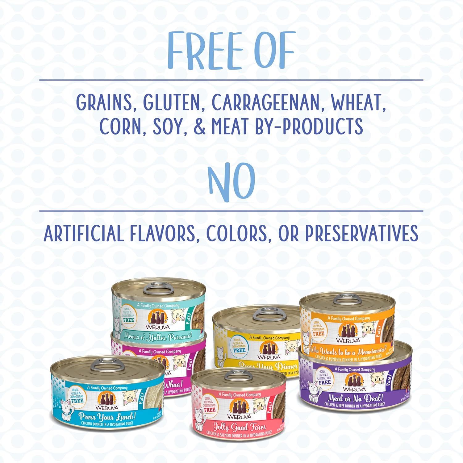 - Grain free, gluten free, and carrageenan free. No corn, wheat or soy. Free from any artificial colors and preservatives