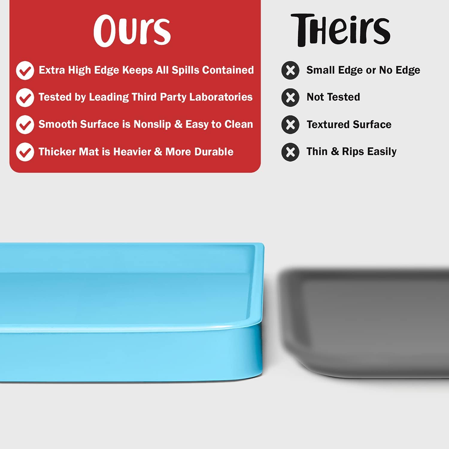 - Less Mess & Less Stress: Super high edge (0.6”) of DogBuddy Dog Food Mat keeps the spilled food and water on the mat and away from your beautiful floor. Silicone is naturally 100% waterproof, so what happens on the mat stays on the mat.