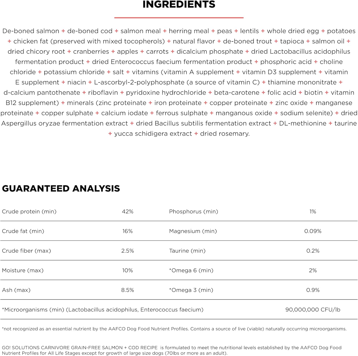 Go! Solutions Carnivore, Grain-Free, Protein Rich Dry Cat Food, Salmon and Cod Recipe, 3 lb Bag