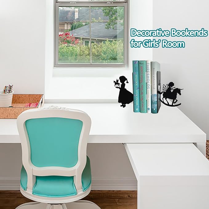 Bookends for Kids, Princess Book Ends for Girl's Room Unicorn Book Ends Angel Bookends - Book Holder for Baby Nursery Books, Gifts for Brides (A Pair)
