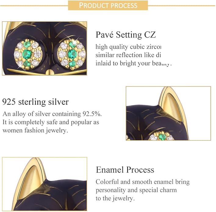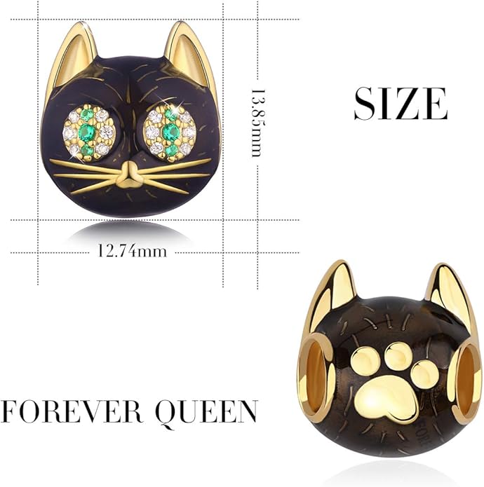- 🐱 MATERIAL&SIZE 🐱 925 sterling silver, sparkling high quality zircon, the ears is Gold plated and the body painted with enamel. Tarnish-free, nickel-free, lead-free, and cadmium-free, not harmful to your health. Compatible with Pandora Charms, Biagi, Troll and Chamilia European bracelets. Fit for both necklace and bracelet. Size: 0.47in x 0.56in (12mm x 13.87mm) , weight: 3.55g