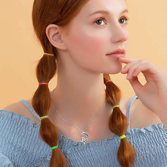 Odinstone Cat Necklace, S925 Sterling Silver Cat on Moon Pendant with Cubic Zirconia, Cat Jewelry Mothers Day Gifts for Mum with Gift Package - I Love You Forever