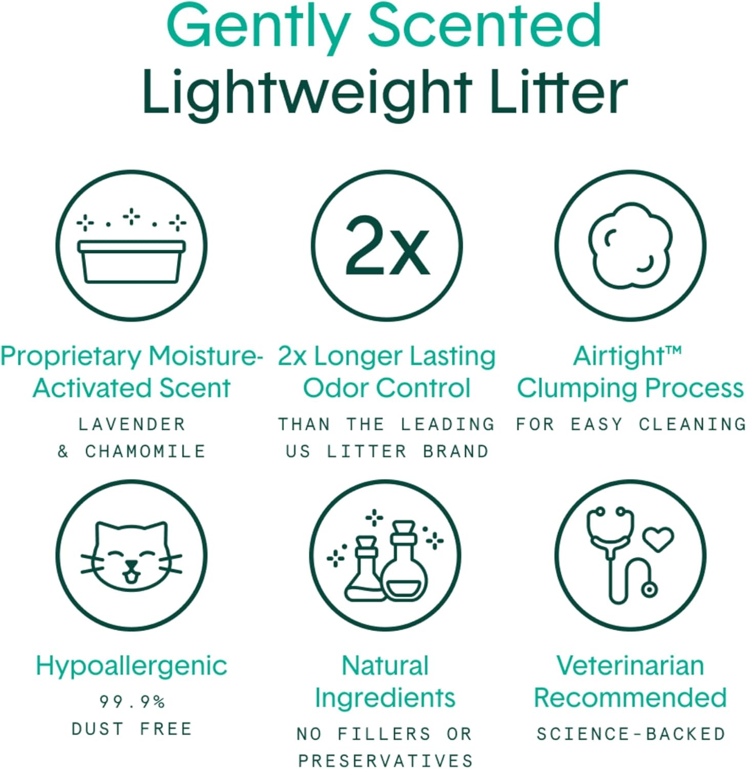 - EASY TO POUR & EASY TO CLEAN: 60% lighter than clay litters, making it easy to lift, pour and store. Clumps form instantly on the top of the litter box, rather than sticking to the sides or bottom. Non-stick for easy scooping & cleaning throughout the month.