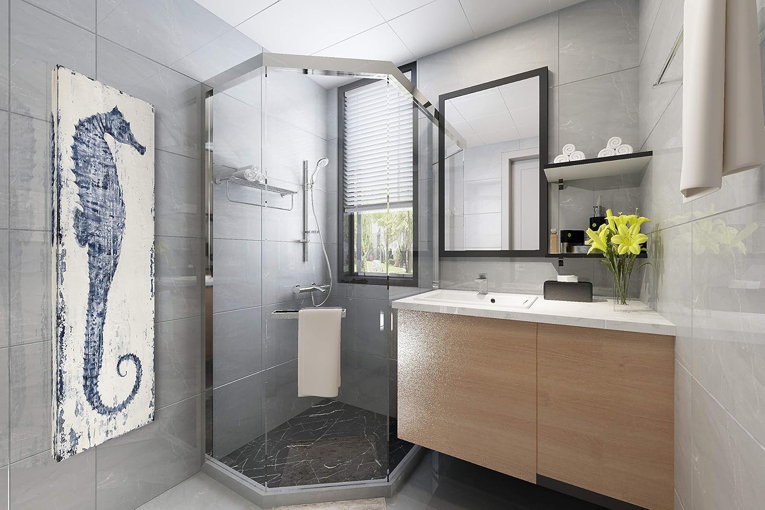 Yihui Arts Seahorse Wall Art Hand Painted Costal Paintings Blue Pictures Canvas Artwork for Living Room Bedroom Decoration