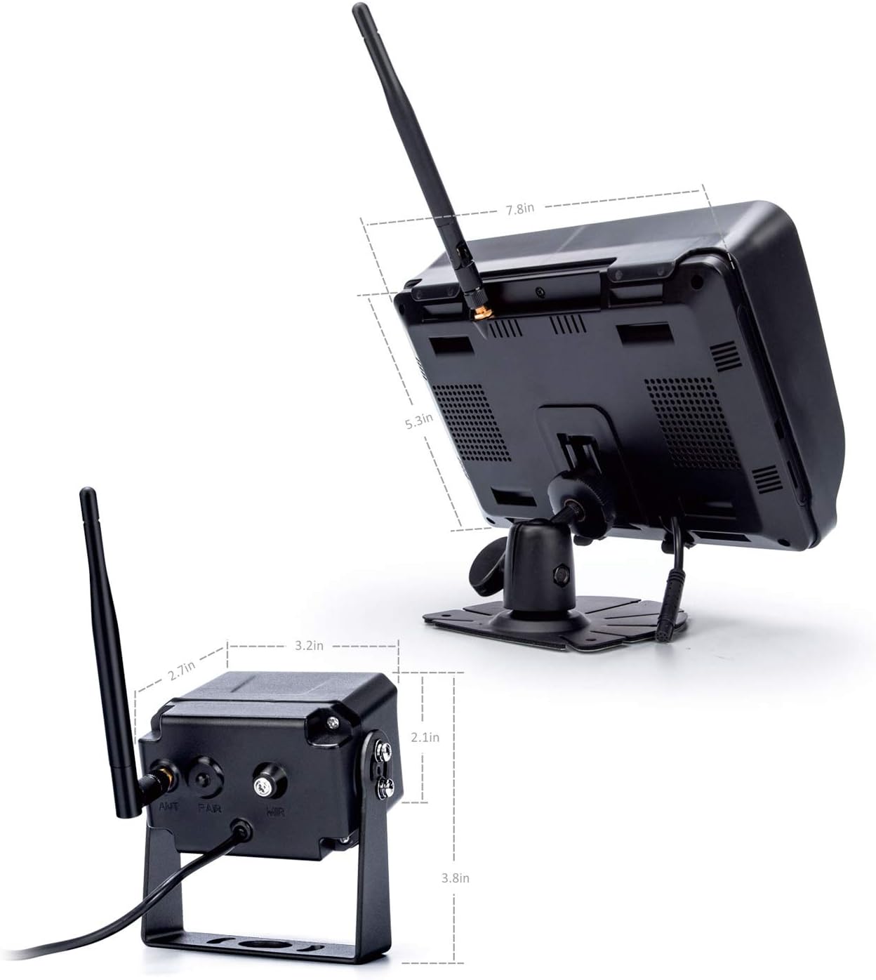 - 【Upgraded Digital Wireless Backup Camera】: No interference, no signal cable needed from camera to monitor, wireless image signal transmits to monitor directly when reversing, Wireless Signal Can Stay Smooth and Clear Even Car Speeds Up To 80mile.
