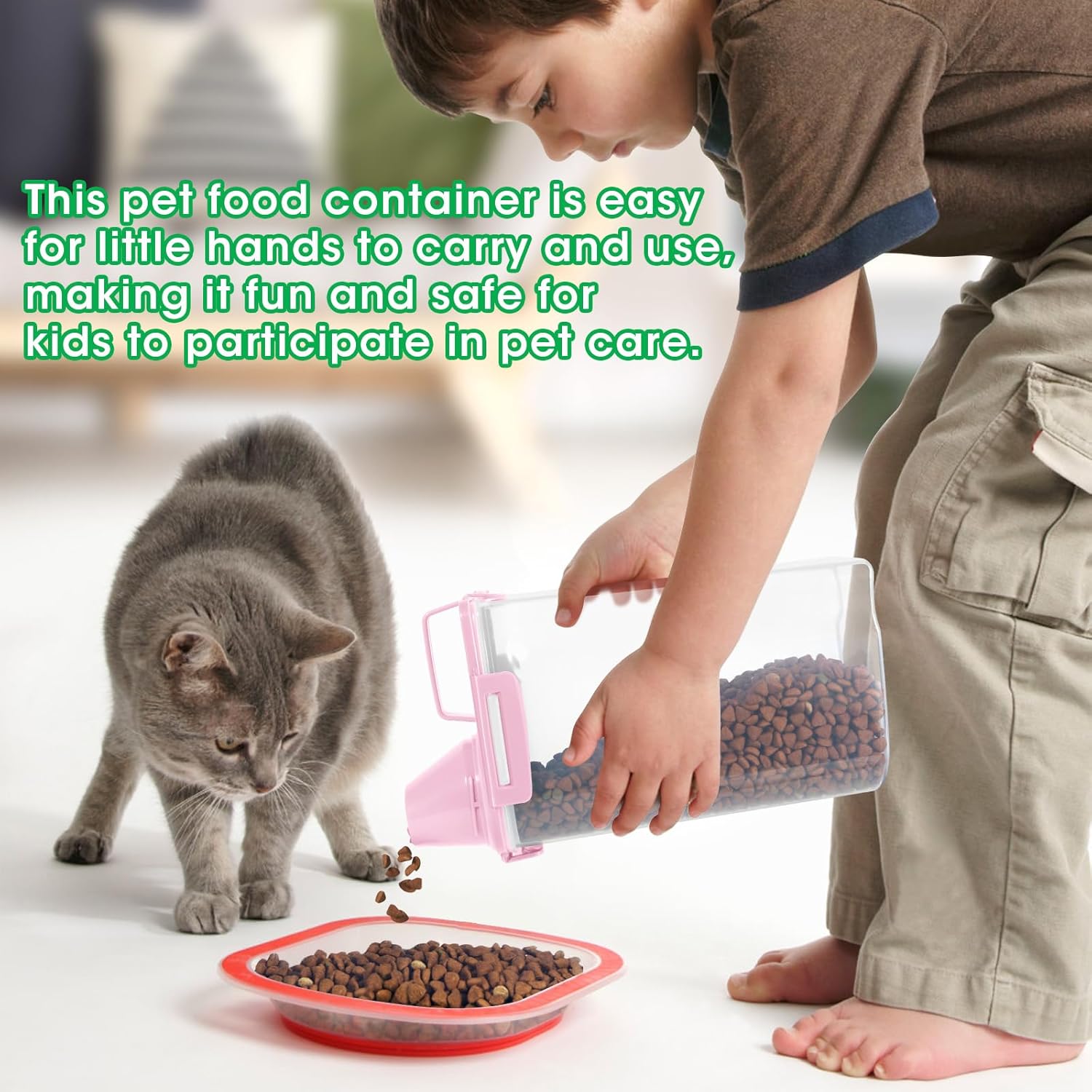 - AIR-TIGHT CEREAL CONTAINER: With the snap-lock latches and silicone gaskets, the dry food storage container can shut tightly to ensure pet food stay super fresh, capped with a secure cup for easy measuring and access to your stored food