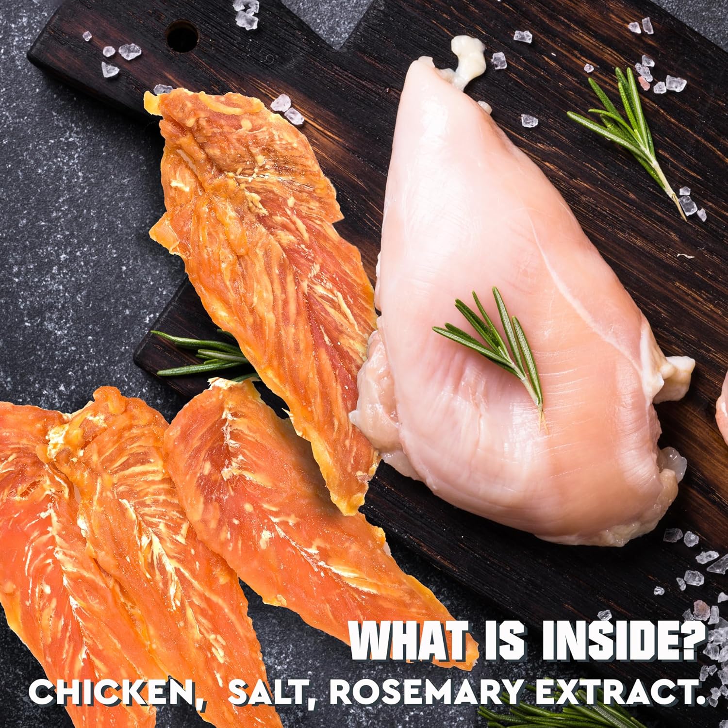 - CHICKEN JERKY MADE OF 100% CHICKEN MEAT: You need to let your dog enjoy high quality natural and healthy food. It is right to choose our product. Dog chewies are perfect for training, these top jerky will last a long time and can special promote dogs' teeth healthy. Have less plaque and tartar. Keeps dogs' jaws strong and breath fresher.