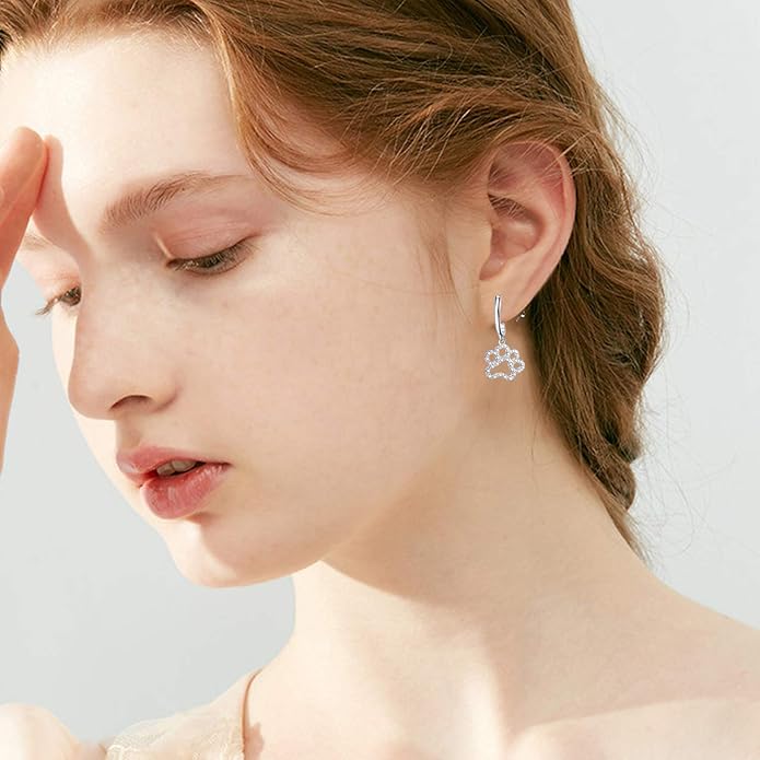 - 💖Design: Paw Print Earrings,925 sterling silver dog paw earrings, inlaid with shining cubic zirconia,dangle drop style,classic,fashion, elegant and charming.Suitable for most women.