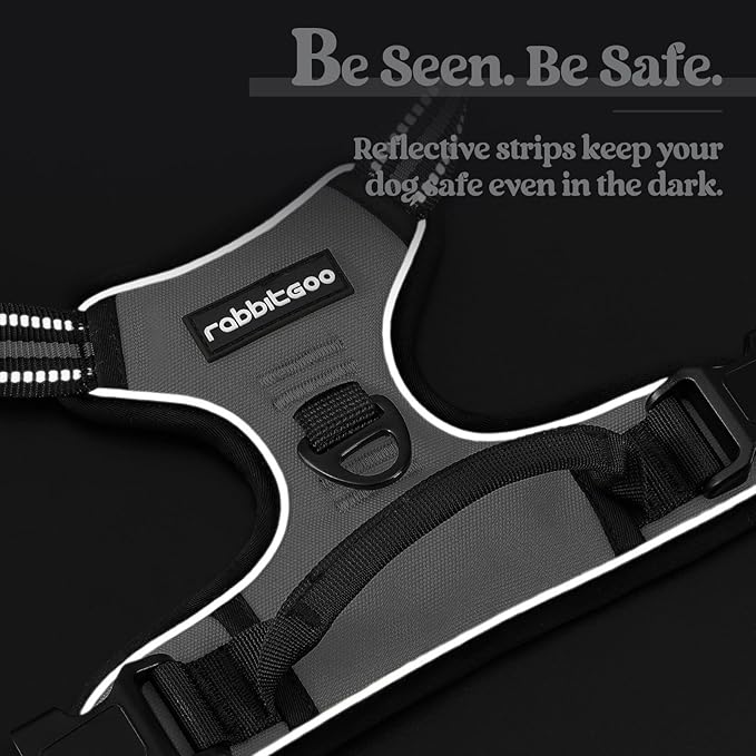 rabbitgoo Dog Harness No Pull with 2 Leash Clips, Adjustable Soft Padded, Reflective Oxford No Choke Pet Vest with Easy Control Handle for Small Dogs, Grey, S