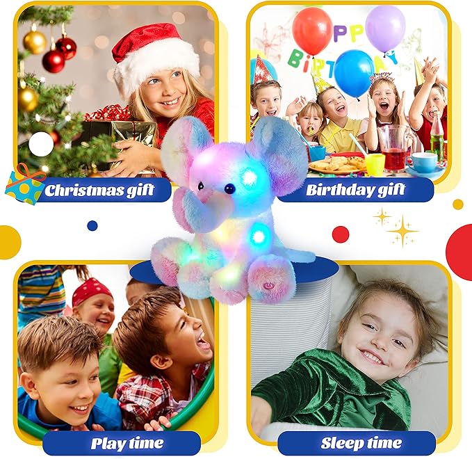 Glow Guards Light up Rainbow Elephant Stuffed Animal,Soft Glowing LED Wildlife Animal Plush Toy with Night Lights &Lullaby,Ideal Gift Birthday Children's Day for Toddler Kids,12''