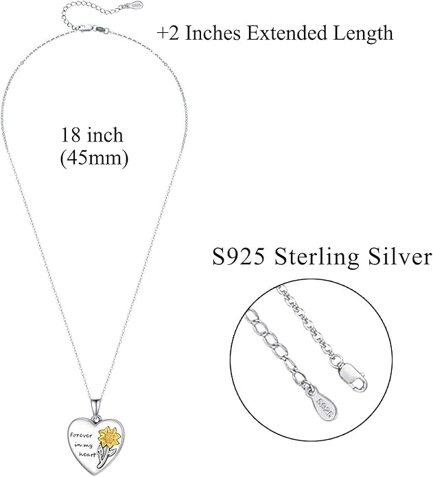 - Real 925 Sterling Silver:Sunflower Urn Necklace for Ashes is made of 925 sterling. Hypoallergenic necklace, no harmful constituent,nickel-free,lead-free, and cadmium-free,long time wearing to maintain good health