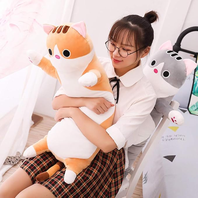 - Cat stuffed animal long pillows are carefully sewed, exquisite workmanship, perfect gifts for Christmas, children's birthday, Valentine's Day. You can choose this cute kitten plush stuffed animal toy to express your concern for your lover, child or friend.