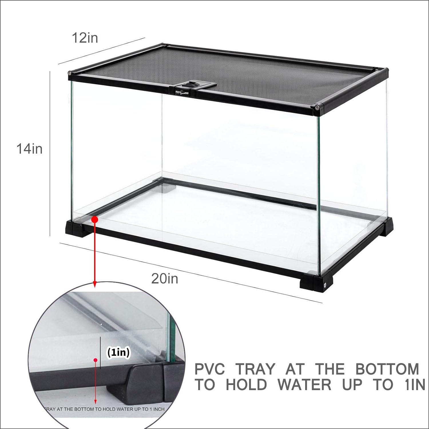 - 【PVC Tray】With a transparent PVC tray in the bottom for keeping substrates wet. So this medium terrarium 20" X 12" X 14" can be used as gecko tank, hermit crab tank, small pets terrarium and more.