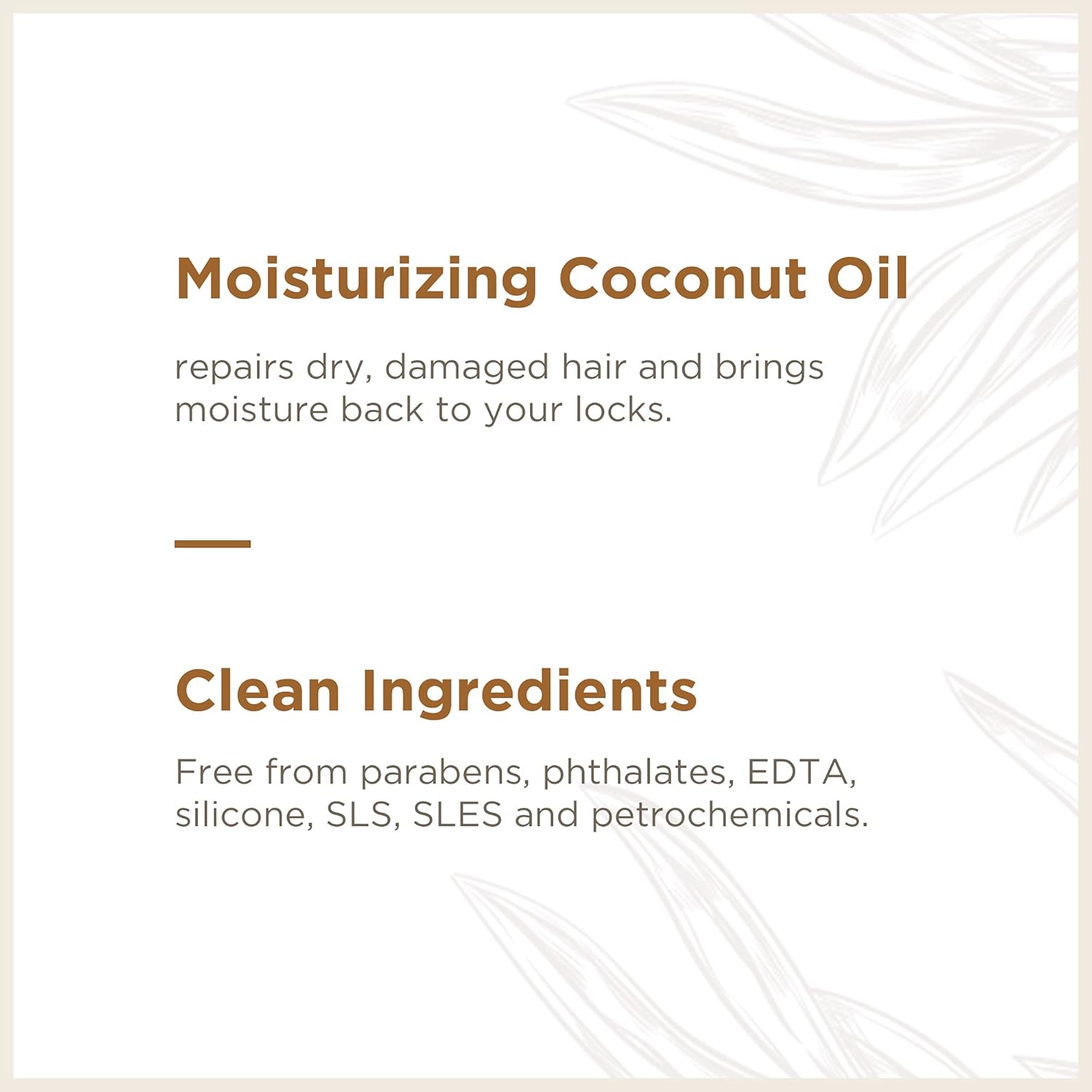- MOISTURIZING SHAMPOO creates a rich lather with coconut oil and Vitamin E to tame frizz and promote soft-to-the-touch, ultra hydrated hair. Coconut oil helps bind hair to proteins to nourish and protect, shampoo creates a rich lather and rinses completely to leave hair soft and residue-free feeling