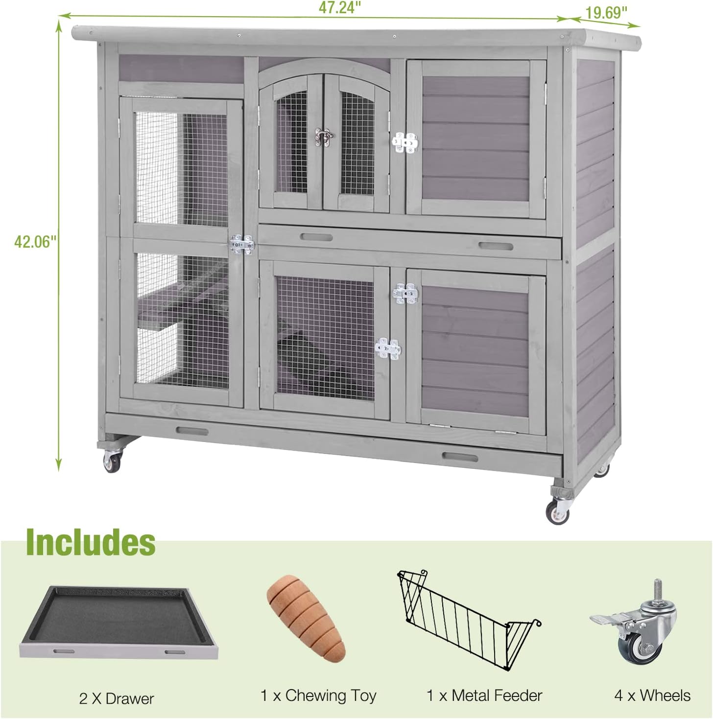 GUTINNEEN Rabbit Hutch Indoor Outdoor Bunny House Guinea Pig Cage on Wheel with Plastic Tray 47inch