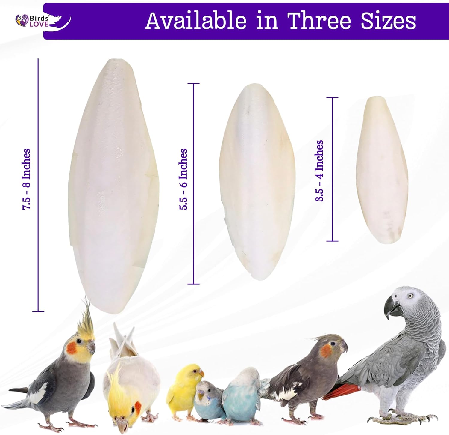 Birds LOVE Natural Cuttlebone | 100% Pure Sun-Dried Calcium Supplement for Birds, Tortoises, Snails & Crabs | Supports Beak & Shell Health | Easy to Chew | 2 Pack, Size 3.5 to 4"